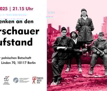 Organisers: The Embassy of the Republic of Poland in the Federal Republic of Germany and the Pilecki Institute in Berlin, in cooperation with the Warsaw Rising Museum, the Polish Institute in Berlin and the Foundation for Polish-German Cooperation.