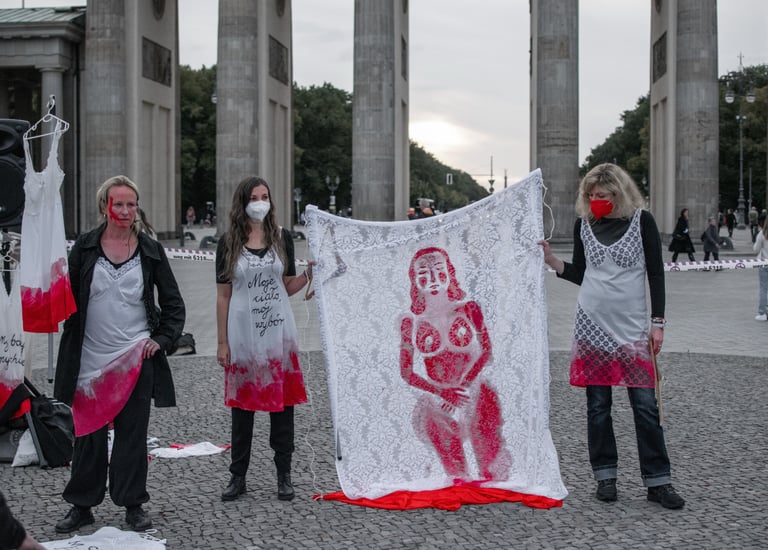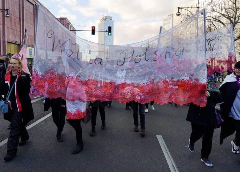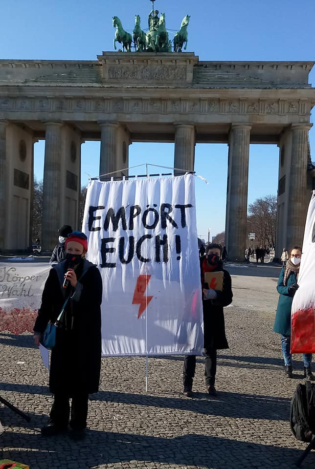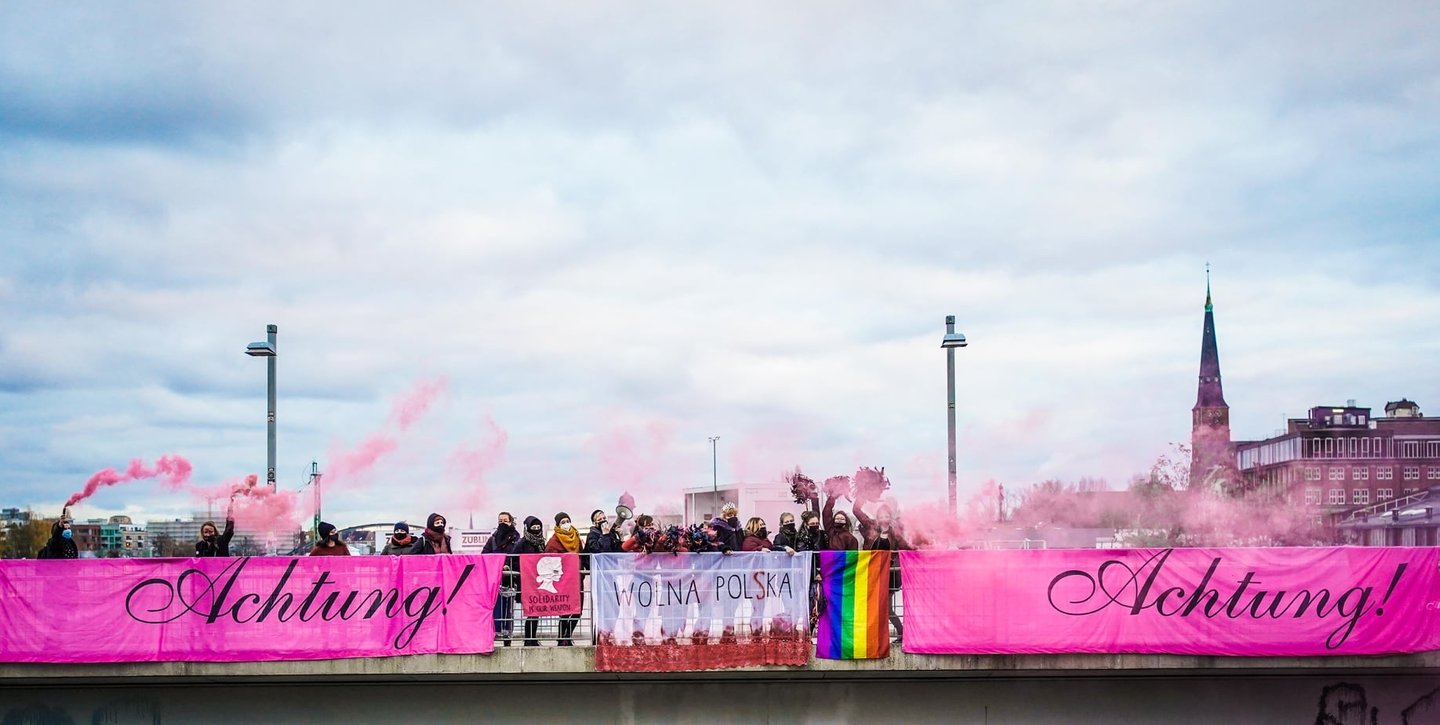Po ogłoszeniu wyroku polskiego Trybunału Konstytucyjnego 22 października 2020 roku — który uznał aborcję z powodu letalnych wad płodu za niezgodną z konstytucją — tysiące osób wyszło na ulice w Polsce. Również w Berlinie.