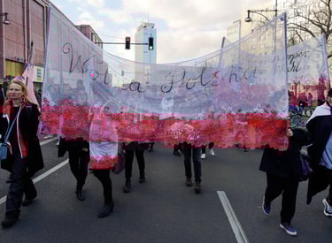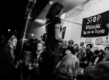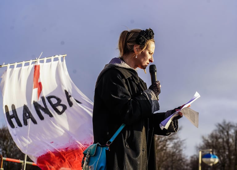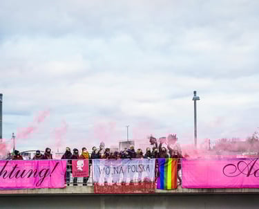 Jednak od końca 2015 roku, kiedy prawicowo-konserwatywna partia Prawo i Sprawiedliwość (PiS) uzyskała większość w polskim rządzie, sytuacja uległa poważnemu pogorszeniu. Przez 8 lat PiS prowadził Polskę ku dyktaturze, paraliżując Trybunał Konstytucyjny, likwidując wolne media, próbując zakazać aborcji, promując nacjonalizm i mowę nienawiści, niszcząc polską gospodarkę, ignorując Komisję Europejską i dystansując Polskę od UE, między innymi. Polskie społeczeństwo było i nadal jest głęboko podzielone politycznie. Media publiczne stały się nacjonalistyczne i manipulują rzeczywistością dla dobra rządu. Wiele osób straciło pracę z powodu decyzji politycznych. W odpowiedzi na te działania tysiące Polek i Polaków utworzyło oddolne ruchy i wyszło na ulice, aby protestować i demonstrować przeciwko polityce rządu. Na szczęście wybory parlamentarne w październiku 2023 roku zmieniły kurs polityczny w Polsce. Partie postępowe i prodemokratyczne próbują odbudować demokrację w Polsce i naprawić szkody - z różnym skutkiem. Ale to dzięki tysiącom aktywistek i aktywistów w Polsce i za granicą społeczeństwo zmobilizowało się i oddało głosy w wyborach na rzecz wolności i demokracji. Polska jest przykładem tego, jak ultrakonserwatywne rządy potrafią zmieniać rzeczywistość, niszczyć to, co ważne w wolnym świecie. Ale Polska jest również przykładem tego, jak walczyć o wolność i nieustępliwie dążyć do celów. Kobiety odegrały w tej walce ogromną rolę. Jak zawsze.