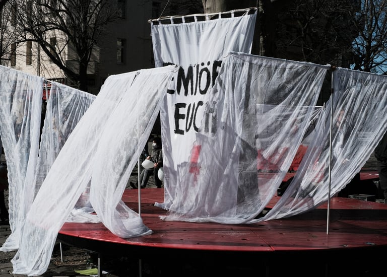 To był czas lockdownu i pandemii COVID-19 — kiedy w Berlinie teatry i kina pozostawały zamknięte, jedynymi dopuszczonymi wydarzeniami społecznymi były demonstracje. Dlatego chciałam, by pojawiła się w nich również sztuka i kultura. Praktycznie zorganizowałyśmy polityczny festiwal sztuki i oporu — nie Berlin Art Week, lecz Berlin Bloody Weeks.